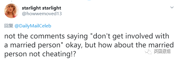 “倒也不是说评论里的‘别跟已婚的人勾搭不清’说得不对,但也说说让那些结了婚的人不要出轨怎么样啊?!”