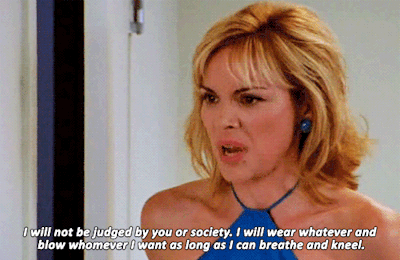 (我不会被你或者社会来评判。我要穿我想要的衣服,睡我想睡的人,只要我能呼吸和下跪!)