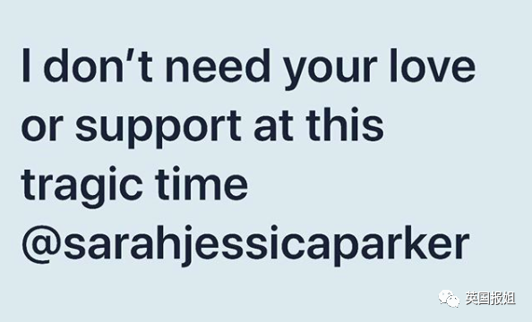 过了两天,凯特罗尔直接在自己的社交平台发布照片@SJP,照片上写道:“我不需要你在这种悲剧时刻给的爱或者支持。”