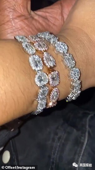 offset好像还给卡老师买了钻石首饰,手上脚上脖子上都有,他把这些珠宝拍下来发在了ins上。