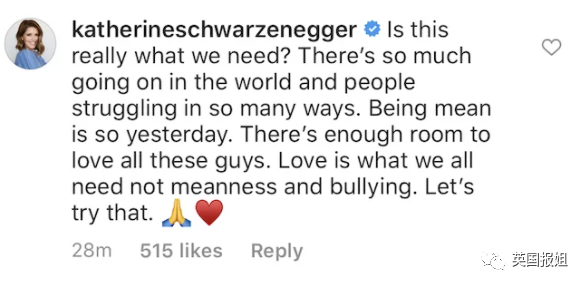 我们需要爱,而非刻薄与霸凌。我们会一起努力吧。”