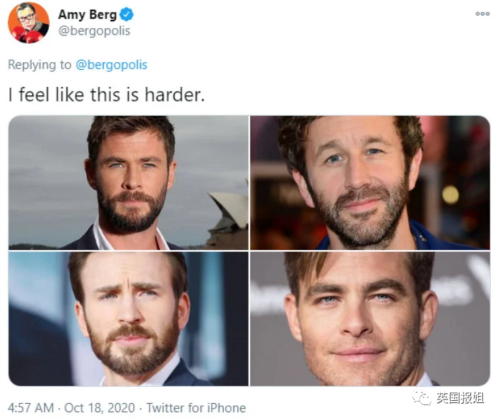 你都想不到,这个推特热搜,最开始,竟然是因为电视作家兼制片人Amy Berg发起了一个投票,邀请各位网友在好莱坞四大Chris里做出选择。