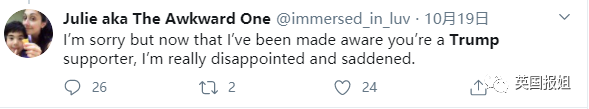 有人直接在帕特推下留言:刚知道你支持川普,真的很难过很失望