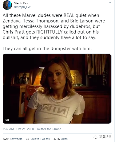 “在蜘蛛侠女主角赞达亚、女武神演员泰莎汤普森、惊奇队长布丽拉森被网暴的时候,这些漫威大帅哥都安静如鸡。