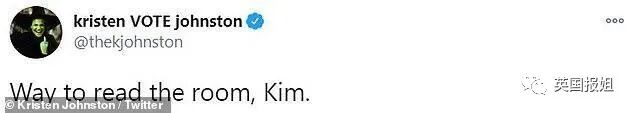 男演员Kristen Johnston非常简短地发了一句,“你可真是审时度势的一把好手啊,金。”