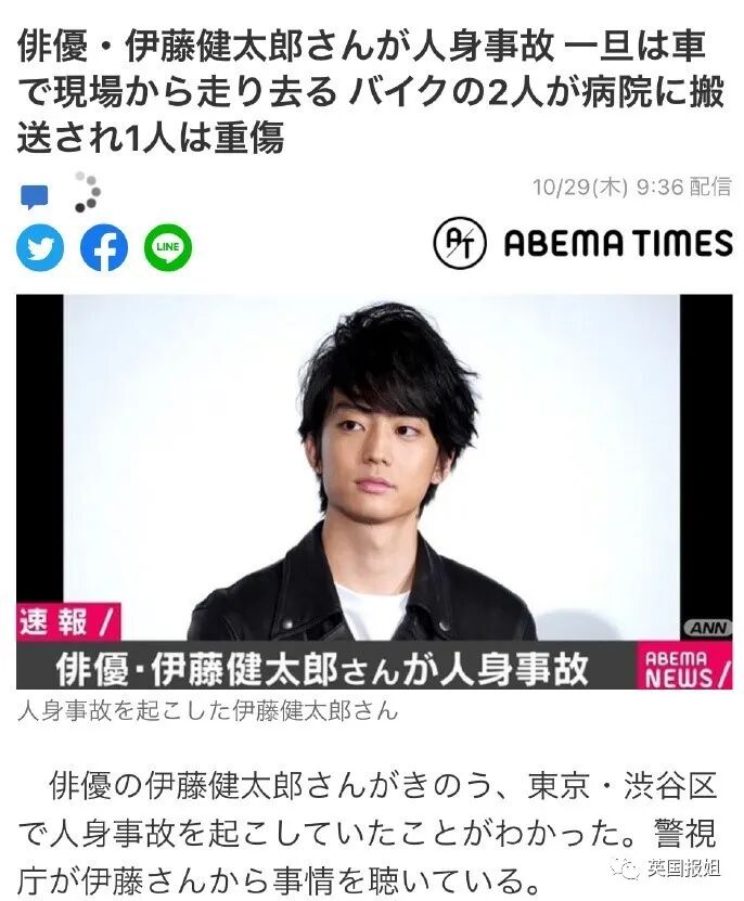 然而,出车祸后的伊藤却一度离开了事故现场,疑似肇事逃逸,随后被日本警视厅逮捕审讯。