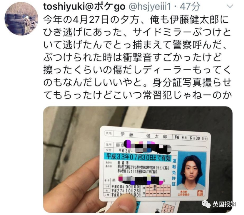 作为证据,这位网友还晒出了伊藤的驾照,然而现在推特账户已经删除,这件事的真伪还暂时没有定论。