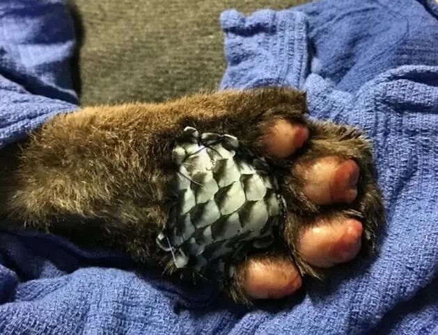 在加利福尼亚的托马斯大火中,一只美洲狮幼崽和两只熊获救。它们的爪子都被严重烧伤,如果采用传统的方法治疗,像这样的野生动物将面临更多的并发症和风险。