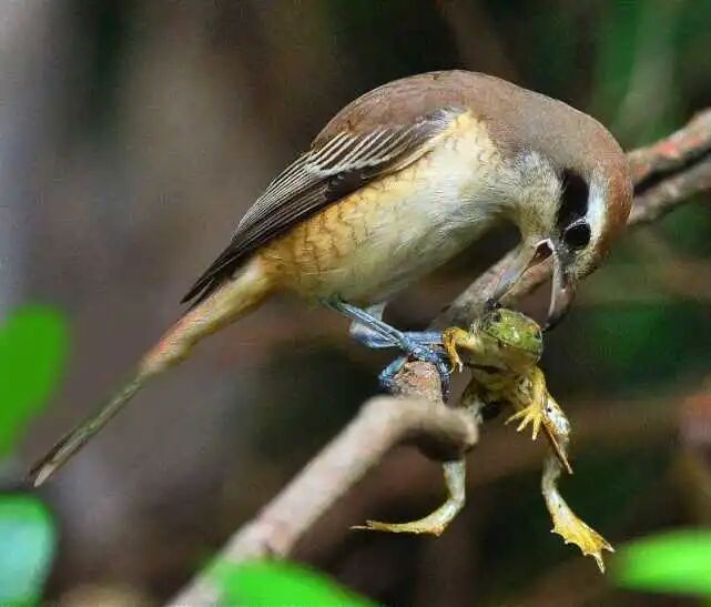 作为一种肉食性动物,伯劳主要捕食昆虫、蛙类、蜥蜴、田鼠以及其他的小鸟。它们的猎杀手段称得上很残忍。