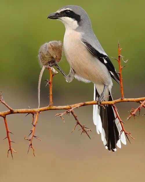 与其说伯劳是一个残忍的家伙,倒不如说它是个聪明的家伙。将猎物刺入铁丝或荆棘是在一种高明的储物方式。