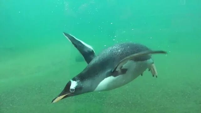 企鹅有着完美的流线型身材,它们的脚趾间有跟鸭子一样的蹼,而且左右两个翅膀划起水来堪比船桨。