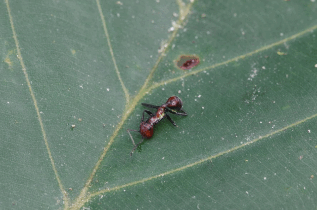 虽然在我们看来这种爆炸是微乎其微的,甚至都不能称之为“爆炸”,但它足以炸伤炸破织叶蚁的表皮。