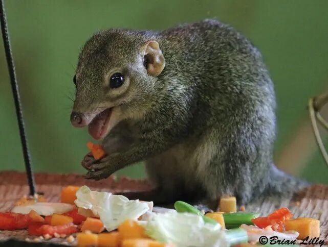 树鼩属于杂食性动物,主要以昆虫、小脊椎动物、水果以及种子为食,这其实也与松鼠的食性有点像。