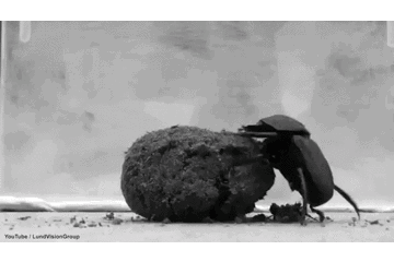 不知道你有没有仔细观察过屎壳郎的滚球行为(应该是没有),它们滚球的时候是背对着球的,两只前脚撑在地上,其余四只脚推着球走。