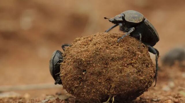 但是,它们并不是停在原地看太阳或月亮,而是爬到粪球上旋转几秒,因为一方面是站得高,看得远,另一方面是它们的粪球比自身大很多,会遮挡视线。