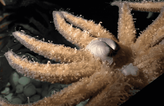 这种独特的进食机制使得海星能够吃掉比它更大的猎物。