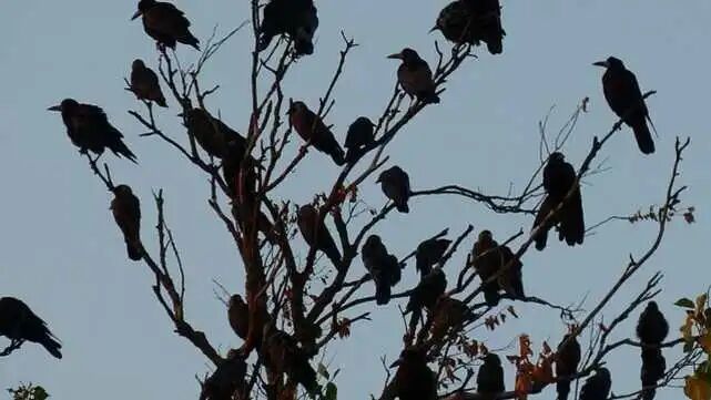上面说了,一只乌鸦的死去通常会引来一群乌鸦的“悼念”,它们并非在死去的乌鸦的身旁,而是附近的树枝上。