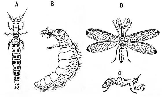 脉翅目昆虫的成虫具有两对膜状的翅膀,前翅和后翅几乎一样大,它们的口器属于咀嚼式口器。