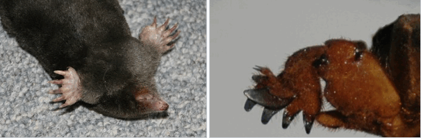 图注:哺乳动物鼹鼠和昆虫蝼蛄的相同结构