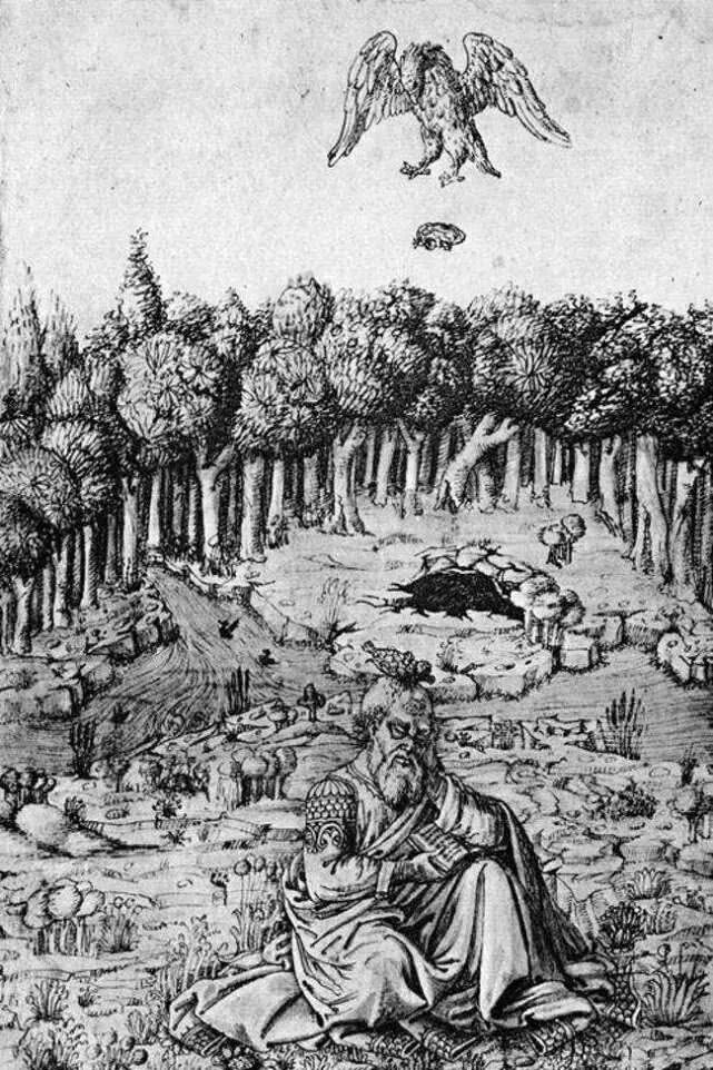 当一只胡兀鹫在高空砸龟壳时,误以为秃头是一块石头,于是将龟壳扔了下来,希望能将龟壳砸开,不幸的是,那并不是石头,而是剧作家的头,导致剧作家当场死亡。