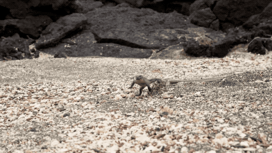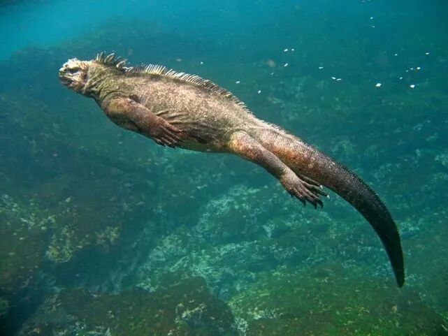 为了更好地吃到海藻,这些鬣蜥进化出扁平的尾巴,以便于在水下活动,这样的适应性特征却让它们在陆地上变得十分笨拙,所以经常被岛上的海鸟和蛇追捕。