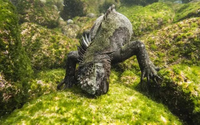 加拉帕戈斯群岛上的海鬣蜥也是一样的,只不过它们吃的是海里的草罢了。