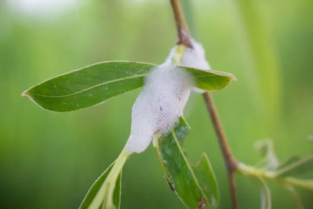 当活性剂和水混合后,沫蝉就会通过气管把气体吹进去,一个接着一个,直到它看起来像一口痰一样。