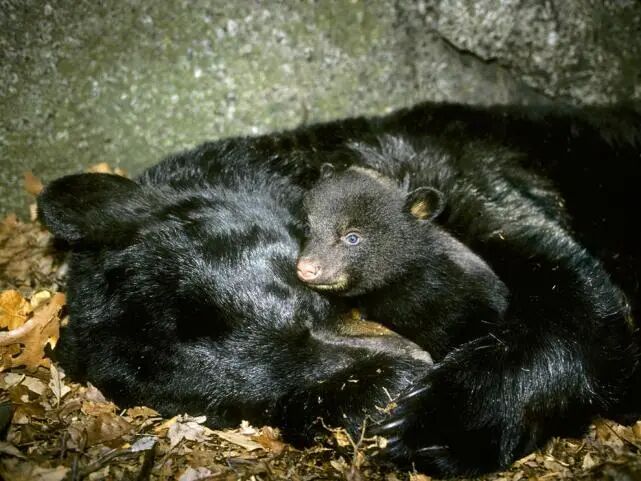 在冬眠期间,母熊可以不用参与任何捕猎活动,而是完全停下来照顾幼崽。