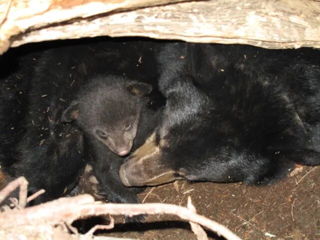 小熊是不会冬眠的,它们需要奶水,所以它们一直在熊妈妈活动。在此期间,熊妈妈就是边照顾小熊边睡觉的。