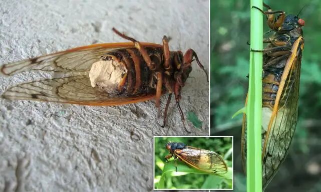 其中就包括一种真菌——Massospora cicadina,这种真菌是专门针对十七年蝉的真菌,而被这种真菌感染后,蝉会变成类似“行尸走肉”一样的存在。