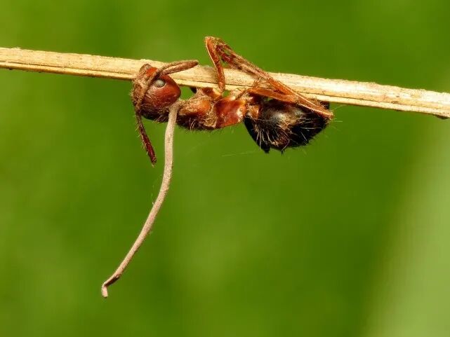其实动物界被真菌操控行为的事情并不算罕见,特别是昆虫,许多昆虫会被真菌操控,比如可怜的蚂蚁就是被真菌操控的典型例子之一。