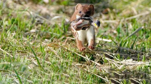 但是捕食大的猎物就不一样了,黄鼠狼可能不敢发起挑战,但是白鼬可以直接把猎物的老巢都端了。