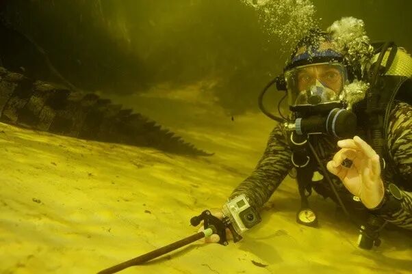 所以,这两个经常会拿到一起做比较,那么潜水员亲密接触鳄鱼会怎么样呢?