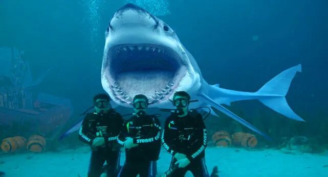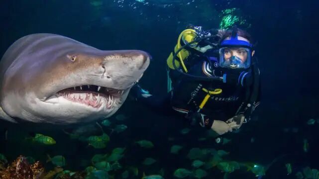 事实上,面对鲨鱼时,在海面冲浪或者游泳的人的危险系数要大于那些潜水的和它们有亲密接触的人。