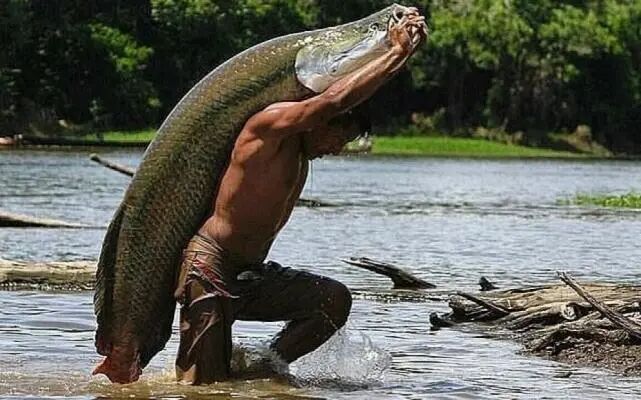 虽然巨骨舌鱼会捕食可怕的食人鱼,但是这种鱼一点都不可怕,相反它们奇怪的呼吸方式,经常吸引人类捕杀,有点像亚马逊河里的“铁憨憨”。