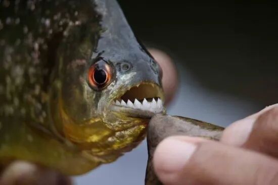 食人鱼经常集体捕猎,动不动就把猎物吃得只剩骨头而闻名。由于它们特殊的嘴部肌肉构造,在同等重量级的动物中,食人鱼有着最大的咬合力。