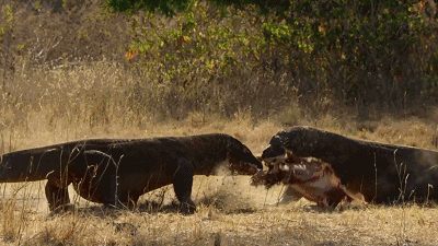 死亡后的水牛,变成为了科莫多巨蜥的晚餐。
