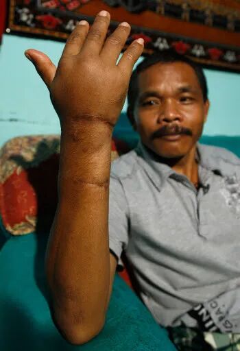 同年,在岛上工作的梅恩就幸运得多。在办公室被科莫多巨蜥袭击,救援及时,没有危及生命,但也在医院接受了6个小时的紧急治疗,缝了55针。