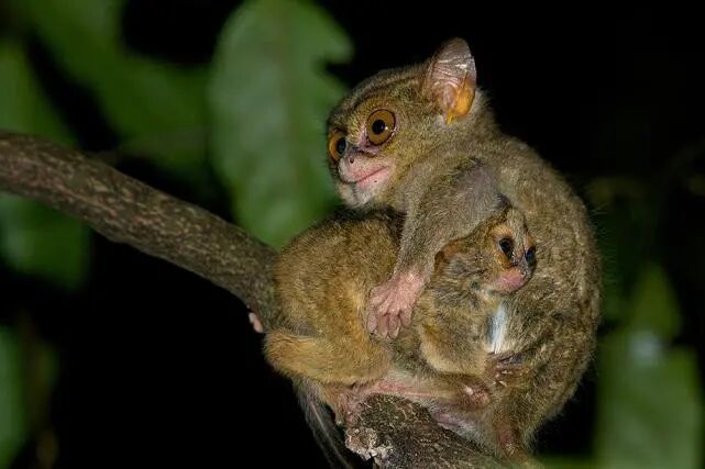 不过它们的大眼睛没有白长,这种大眼睛就是为了适应夜间活动而进化的,这让眼镜猴能够在夜间捕食。