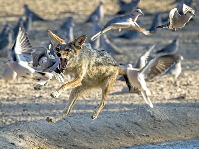 也正是因为到处围观,胡狼也被称为战地记者,在它的见证下,发生了多起不同动物之间的打架斗殴。