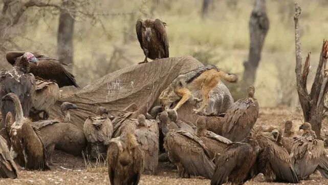 就拿秃鹫来说,它们能在空中第一时间发现食物,但秃鹫没办法撕开动物尸体的皮,这时候就需要胡狼的帮助。等胡狼用坚硬的牙齿扒开动物尸体后,秃鹫才能饱餐一顿。
