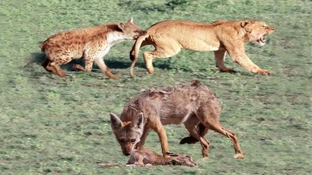 此时,无论是狮子还是鬣狗,都无暇顾及小小的胡狼。