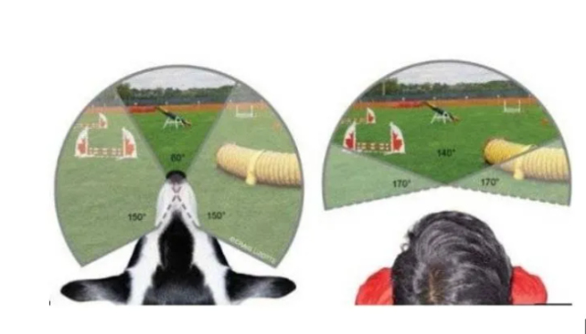 狗的夜视和动态视觉要比人类强得多,视野也更广。