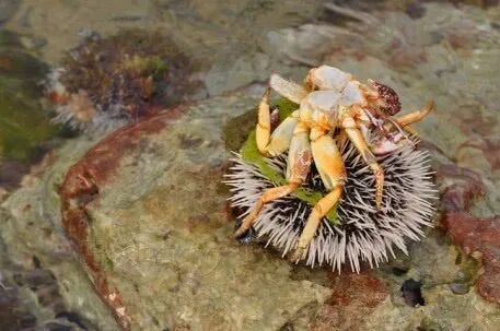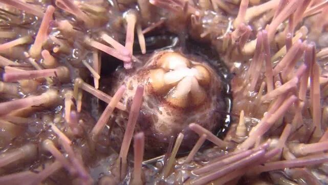 全身布满棘刺,一般长1-3厘米,厚1-2毫米,得益于这些又长又尖的刺,它们在海底天敌不多,只有像海獭、龙虾、螃蟹、箭鱼等动物有特殊的能力撕破海胆保护层,才能享用这种美食。