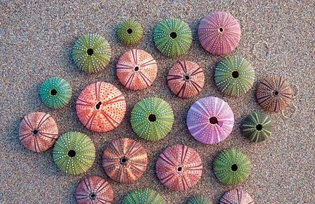 海胆的刺掉光后,就只有一个空壳,有辐射对称的纹路和各种颜色,因此是很多人收集的艺术品。