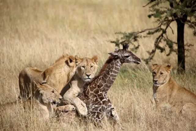 但这并不意味雄狮不能捕杀长颈鹿,大自然中存在雄狮杀死成年长颈鹿的案例,只是这样的案例不多见。