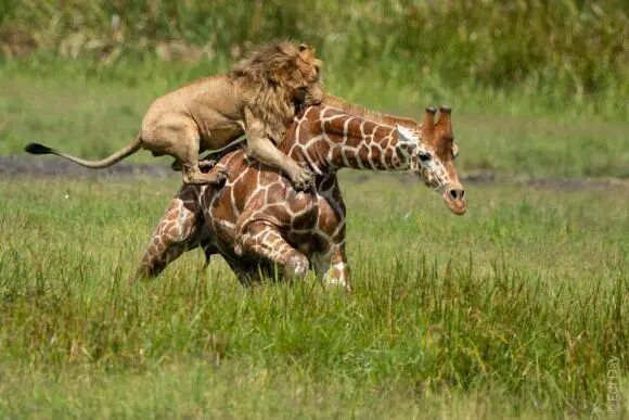 其次,狮子擅长背后进攻,长颈鹿后踢腿足以致命;