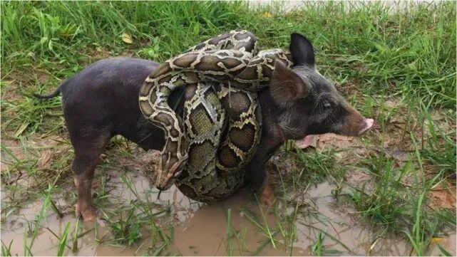 其次,蛇经常会攻击动物的幼崽,包括小猪。