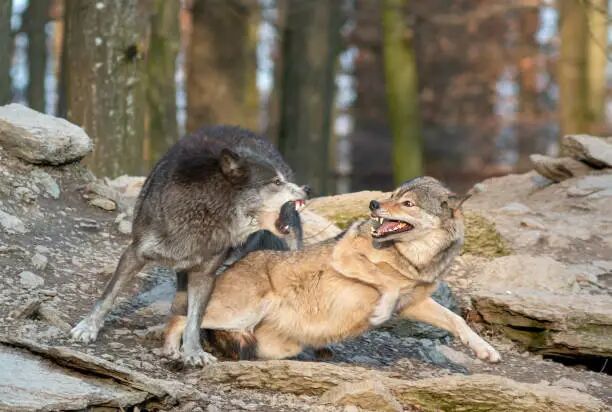 出于对领地和食物的竞争,狼群间的杀戮一直都存在。在自然保护区内,被观察到差不多有14%-65%的狼死于狼群间的斗争。