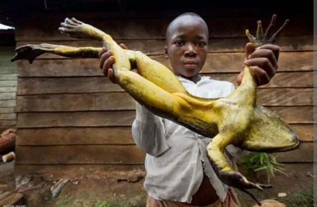 像白斑河豚这样为爱筑巢的,还有很多,非洲歌利亚蛙,是吉尼斯记录中最大的青蛙品种,比我们常见的牛蛙还要大,体长可达30几厘米,体重可达3.4公斤,一跳有3米远。